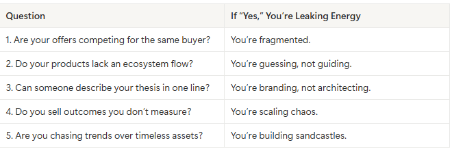 “Where is your business leaking energy — in offers, operations, or direction?”